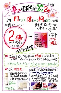 春の化粧品デー・岩橋ポイント2倍デー [イベント情報]![]() |