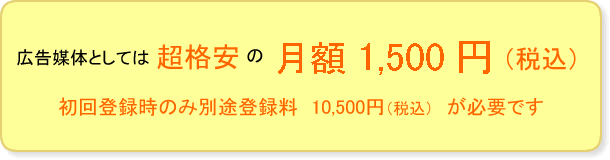 広告媒体としては超格安の月額1,890円(税込)初期登録時のみ登録料10,500円が別途必要です